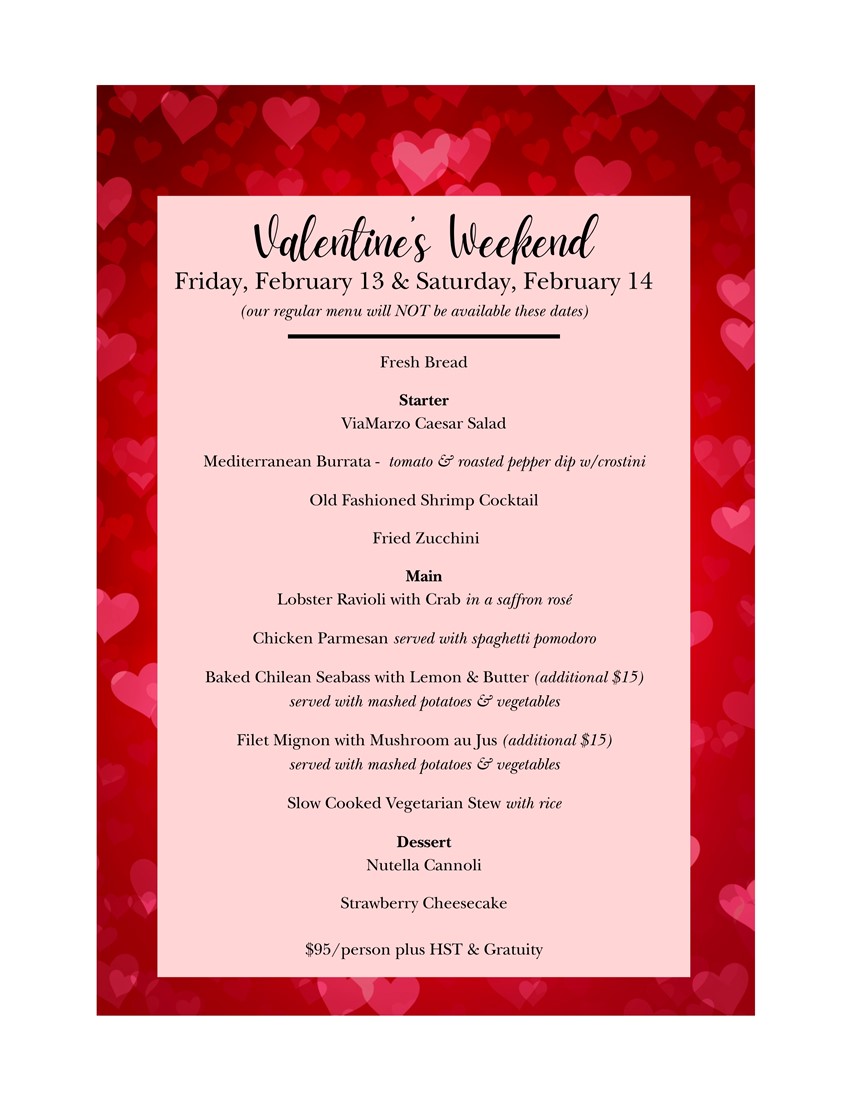 PLEASE NOTE OUR REGULAR MENU WILL NOT BE AVAILABLE FEBRUARY 13/14
