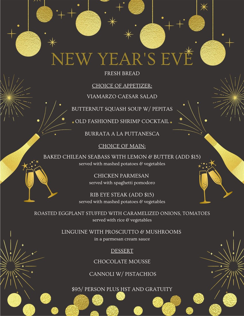 PLEASE NOTE: Our regular menu will NOT be available December 31